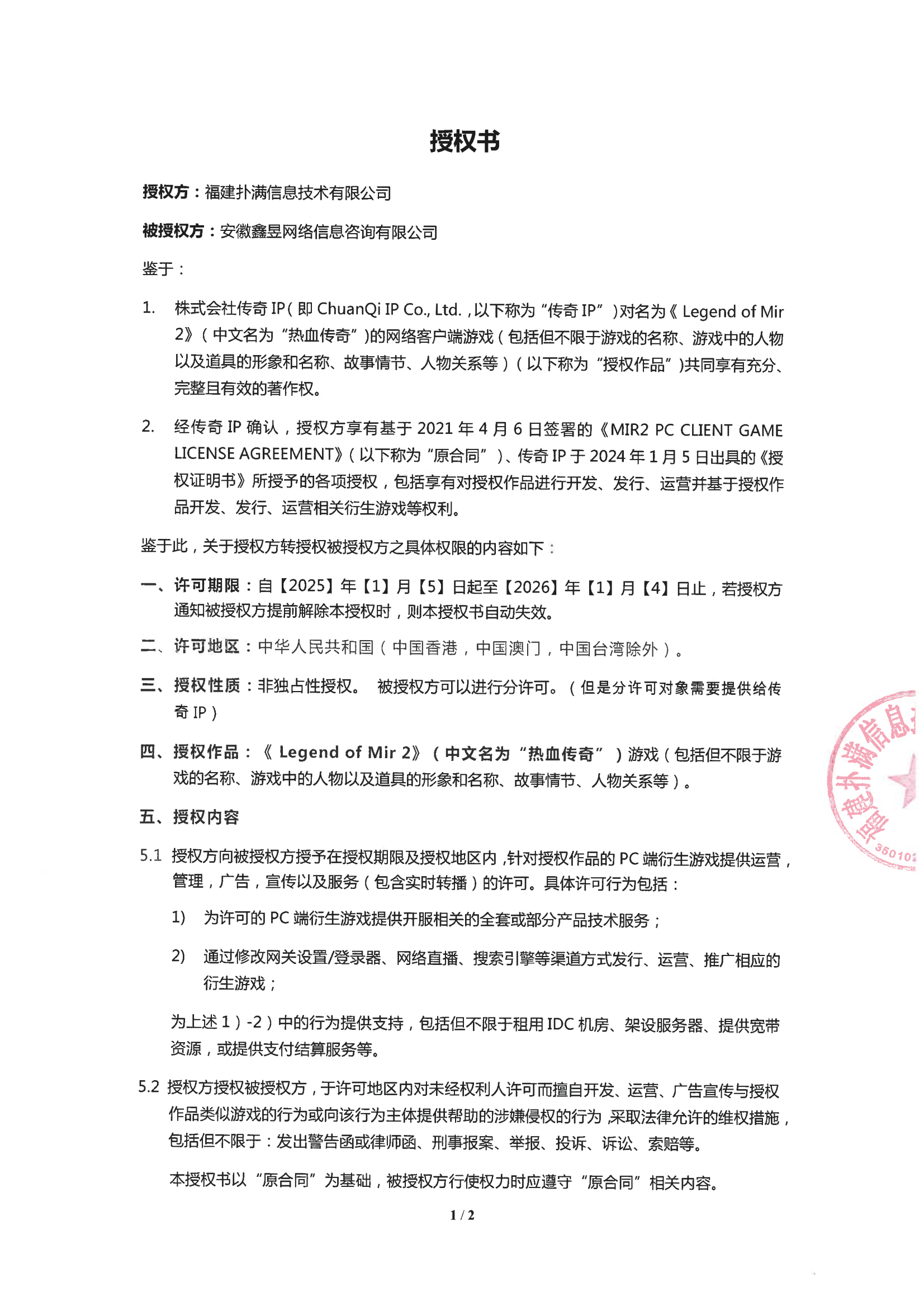 關(guān)于對《The Legend of Mir 2》(熱血傳奇) 衍生品游戲直播的嚴(yán)正聲明